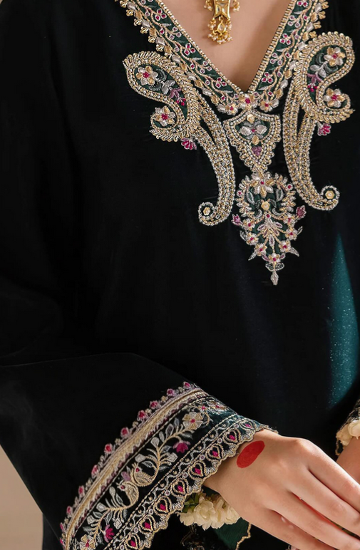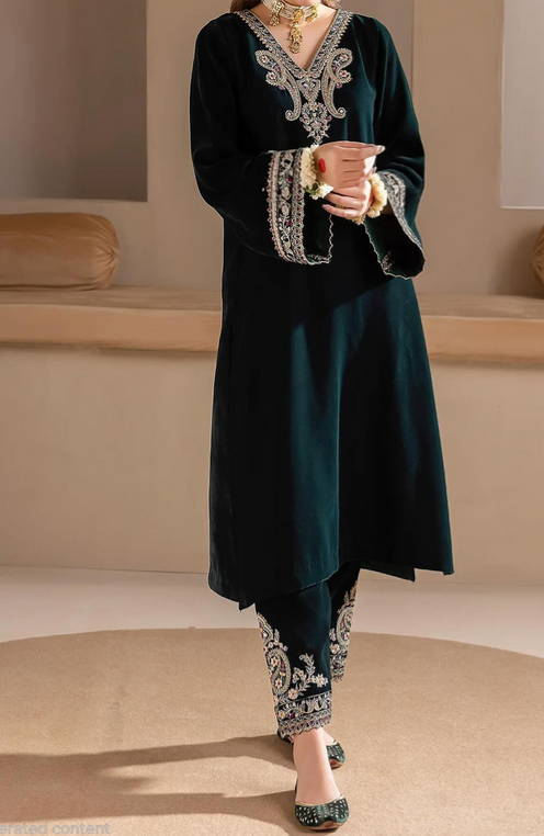 A straight-fit suit set from our latest festive collection. The set combines a kurta and pants in velvet and a jacquard woven silk dupatta. Kurta comes accentuated with computerised embroidery.